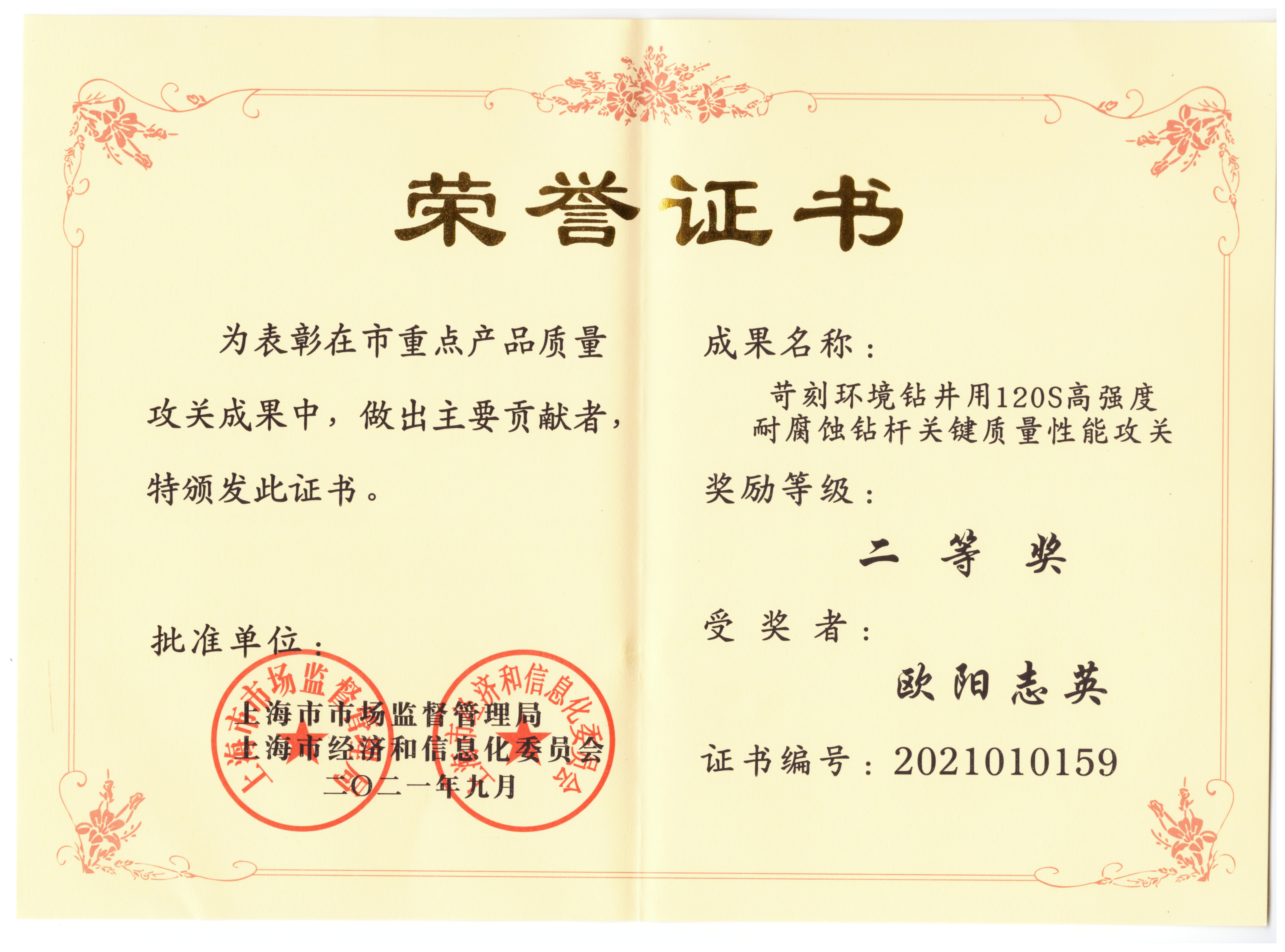 質量性能攻關二等獎2021年