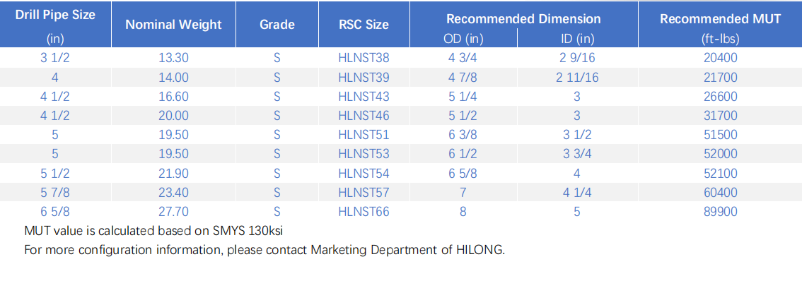 Under the same conditions, the torsional strength of HLST and HLIST can be reached or exceeded. This allows for use of streamlined tool joints and improved hydraulic performance.